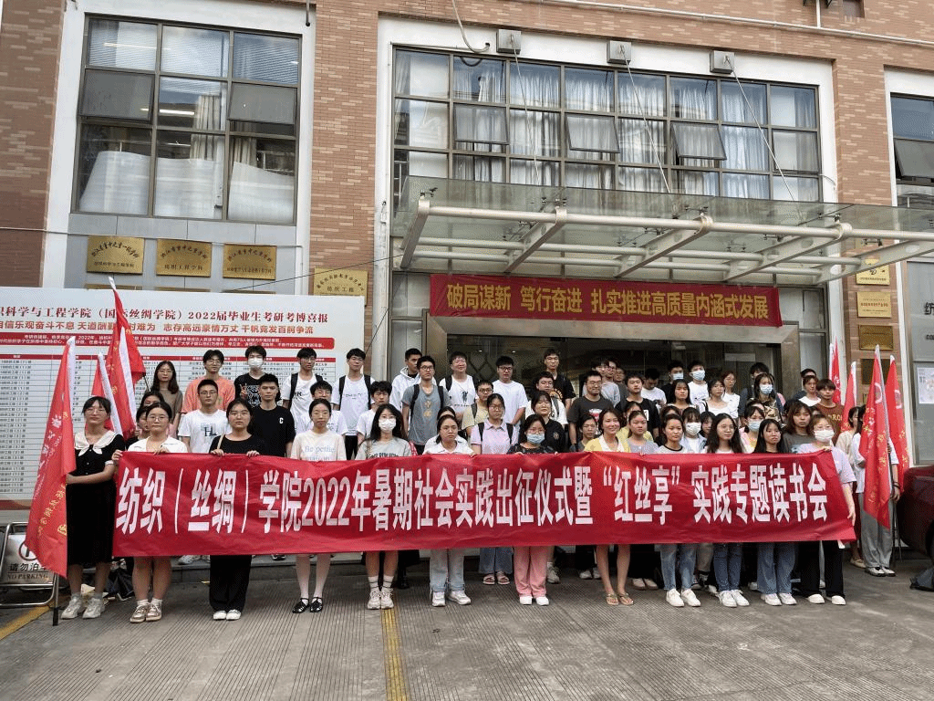 (国际丝绸学院)举行2022年暑期社会实践出征仪式暨“红丝享”实践专题读书会活动。学院党委副书记方平,团委书记侯霞,社会实践指导教师代表朱佳琳出席,参与会议的还有暑期社会实践各团队负责人和成员代表、各学生组织负责人及新发展党员代表。活动由团委副书记张虹主持。