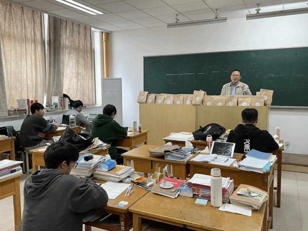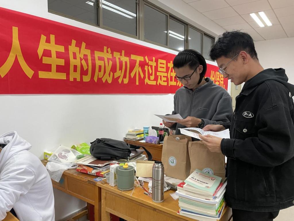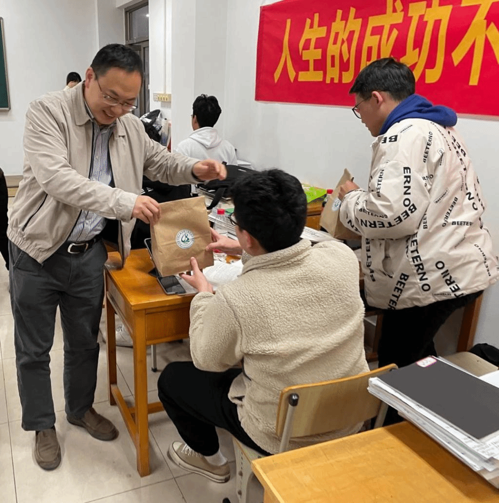 在鼓舞动员环节之后,院长于斌和副院长苏淼向在座的考研学生发放了学院特别定制的考研“福袋”。福袋里不仅包含着补充能量的各种“暖胃美食”,还有学院学生工作办公室为全体考研学子写的一封封“暖心信件”。质朴简单的文字表达了全院所有教师对考研学子金榜题名的真挚祝福,在座的考研学生纷纷表示备受鼓舞,信心十足。