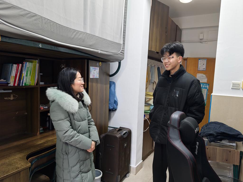 走访交流过程中,各年级辅导员针对不同学生群体需求开展个性化指导。同学们也积极反馈,分享自己寒假期间的见闻和收获,也围绕学业规划、课程设置、校园活动等方面提出了自己的想法和建议。老师们耐心倾听,一一回应。