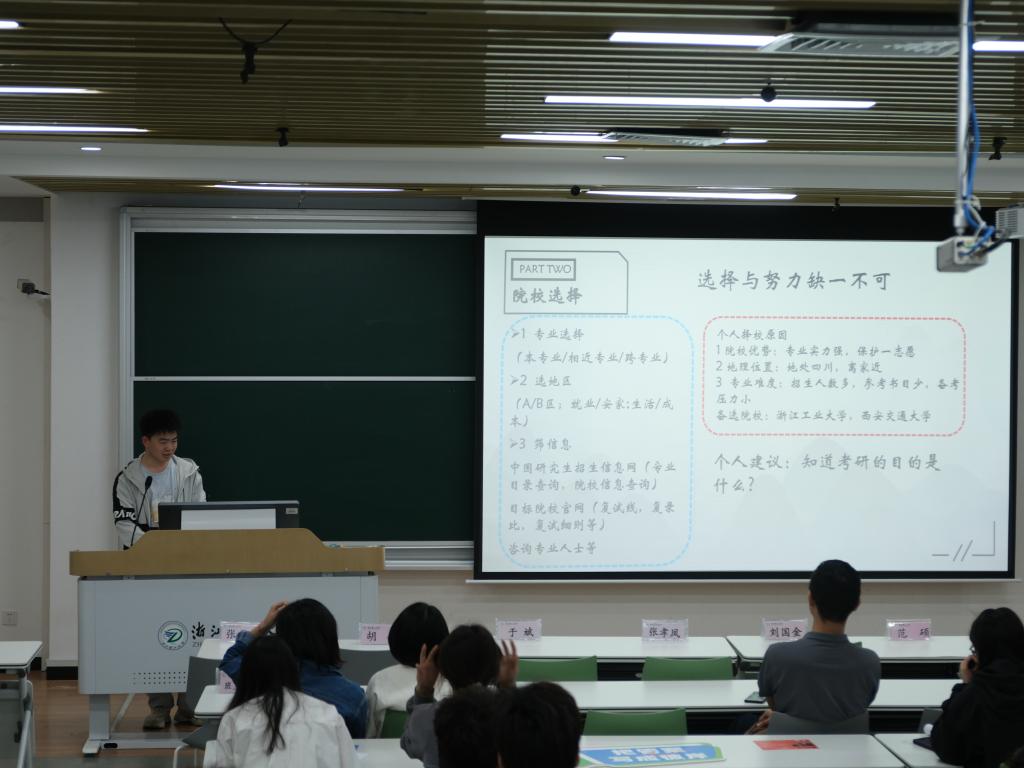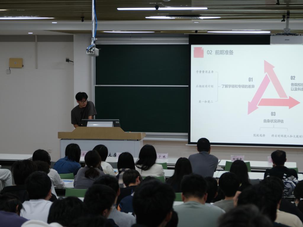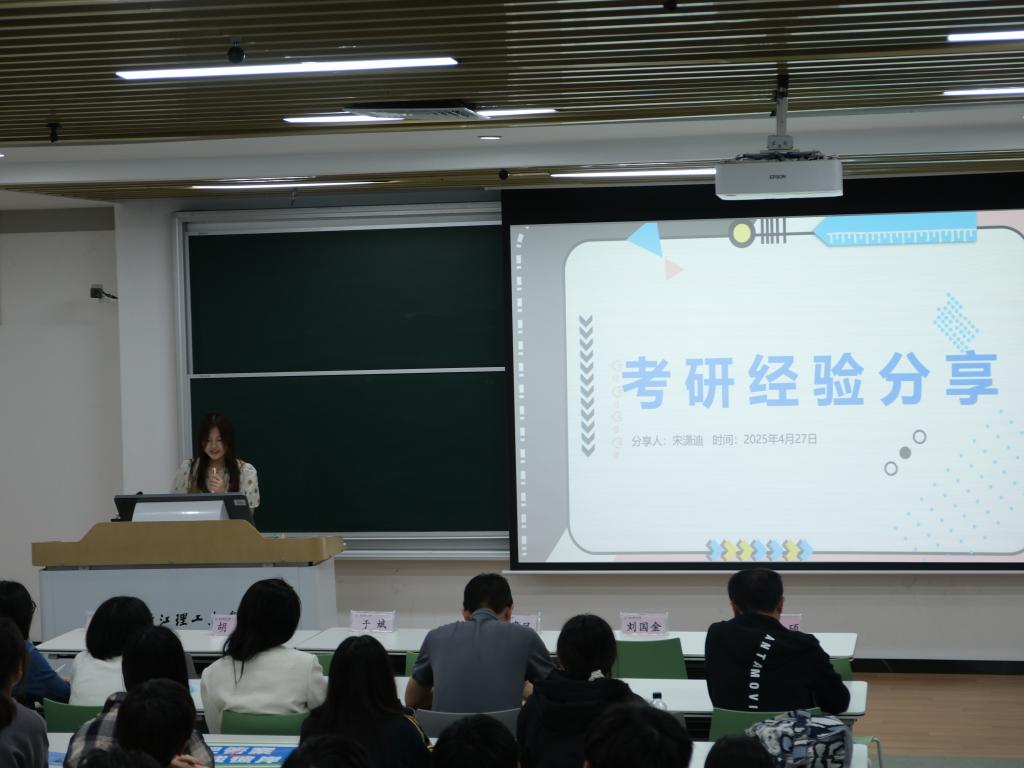 最后,三位2025届考研成功学子受邀进行经验分享。成功考研至东华大学的宋潇迪从“专业课深度突破”,分享如何通过构建思维导图串联知识体系,并建议善用学院导师资源,针对性提升科研论文阅读与写作能力;上岸人妻