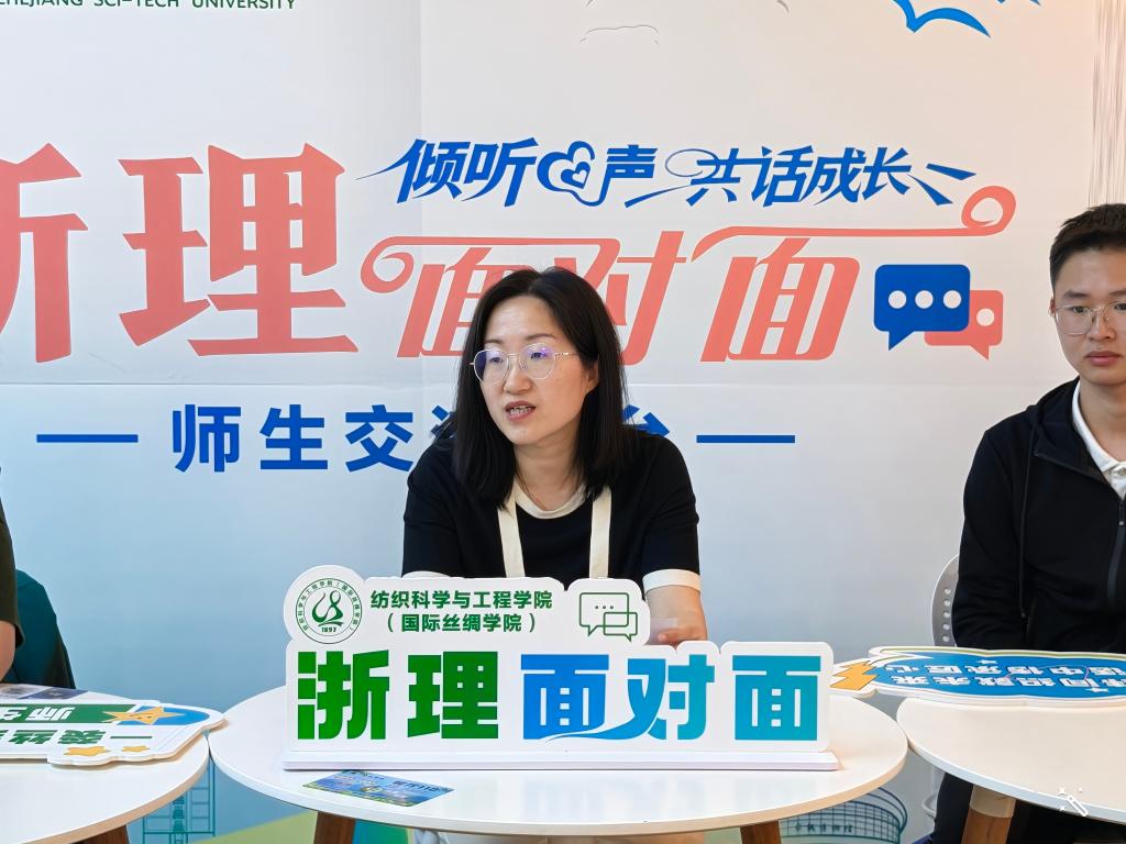 (国际丝绸学院)在桂花园二楼举行首场“浙理面对面·经纬话成长”师生互动交流活动。学院党委副书记、纪委书记张孝凤,本科生辅导员张虹、顾晨阳以及24-25学年第一学期转入学生参加活动,共同围绕学业适应、专业发展、职业规划等话题展开深入对话,架起师生“双向奔赴”的连心桥。