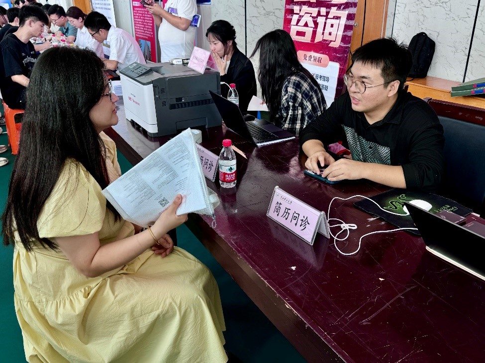 招聘会现场气氛热烈,许多企业摊位前排起“长龙”。600多名毕业生积极投递简历,与用人单位面对面交流,他们问询企业的发展前景、岗位需求、薪资待遇以及工作环境等情况,企业代表也热情耐心地为他们解答,并表达求贤若渴之意。招聘会现场还设立“简历问诊”专区和简历打印服务专区,就业辅导员为毕业生提供个性化就业政策咨询、简历制作指导和面试技巧提升服务,帮助同学科学择业、积极就业。20多位低年级志愿者做好企业调查与现场秩序维护,帮助学长学姐走好就业之路。