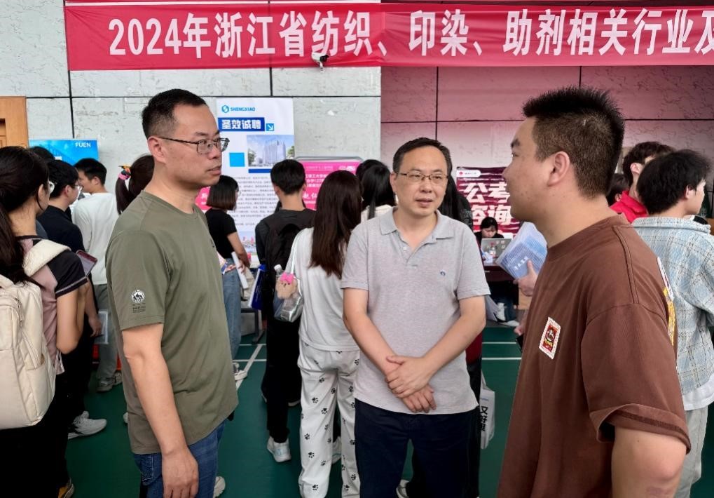 (国际丝绸学院)、材料科学与工程学院、化学与化工学院联合举办,浙江省纺织印染助剂行业协会、浙江省印染行业协会共同协办的2024年浙江省纺织材料、印染、助剂相关行业及校友企业参加招聘会。纺织(丝绸)学院院长于斌、党委副书记方平携毕业生班主任、部分导师前往招聘会,并现场指导有关工作。