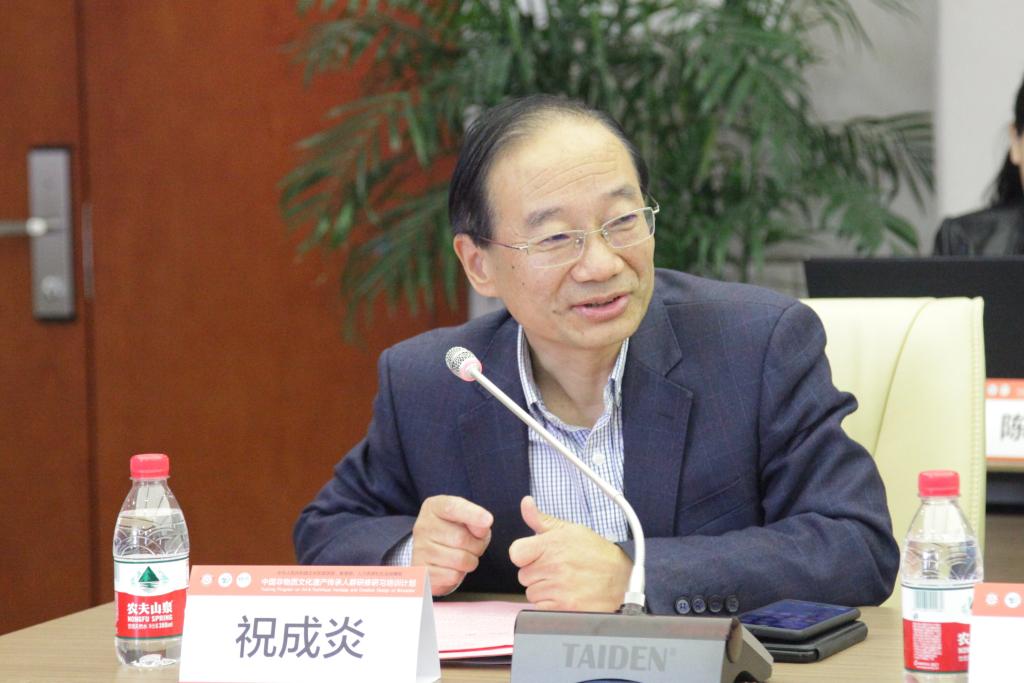祝成炎教授介绍了“中国非物质文化遗产传承人群研修研习培训计划——织锦技艺传承及创意设计研修班”的基本情况,并对本期研修班的课程设置及特色进行了介绍。祝成炎表示,人妻