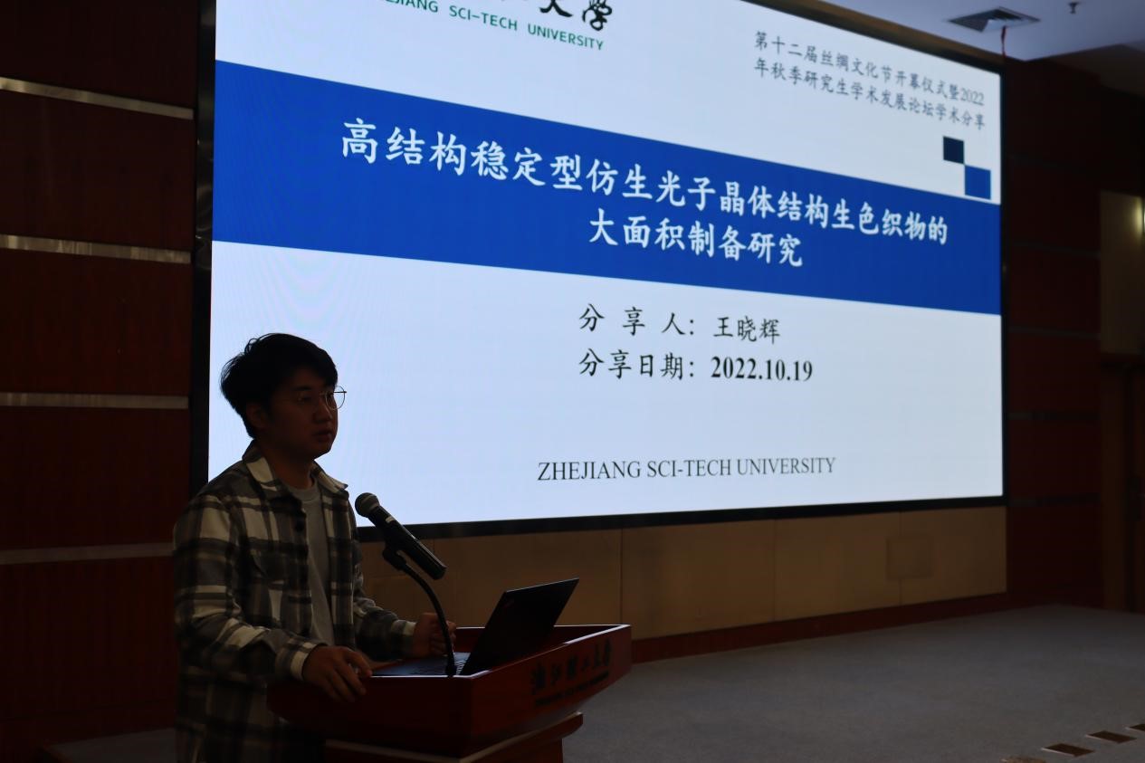 开幕会结束后,随即进行了2022年秋季研究生学术发展论坛,来自纺织(丝绸)学院和材料学院的五名同学在现场分享了自己的学术成果,展现了当代新青年扎扎实实做科研,用奋斗擦亮青春底色的良好精神风貌。