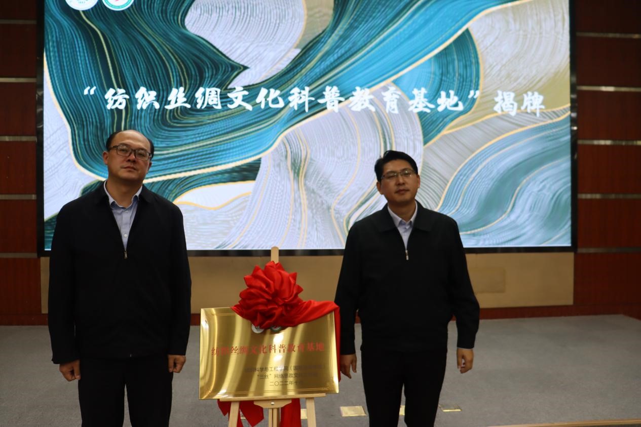 开幕上还进行了“纺织丝绸文化科普教育基地”揭牌仪式,学工部部长胡琦、杂志社李启正为基地揭牌。