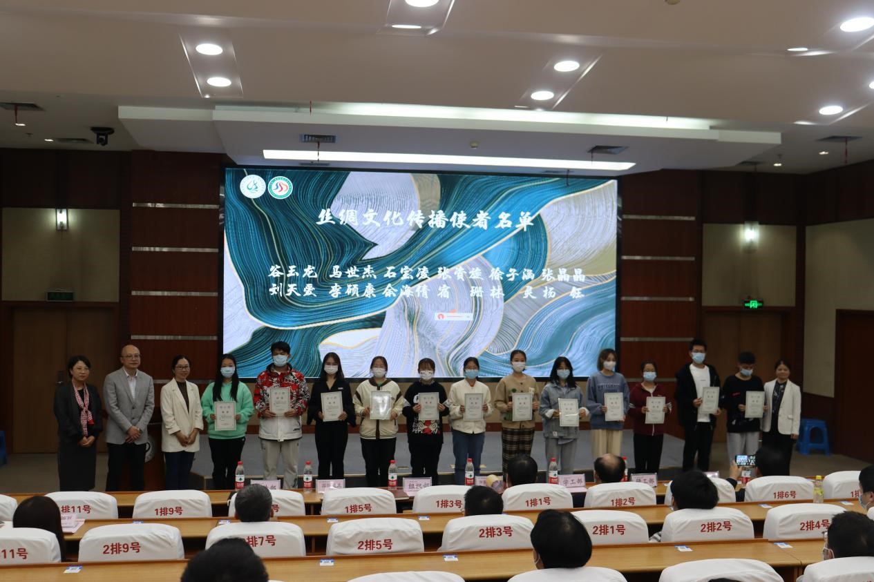 开幕会上,与会嘉宾为12名“丝绸文化传播使者”颁发证书,丝绸文化传播使者代表石宝凌同学发言,她表达了要用活丝绸文化节资源、用好三丝文化空间平台和科普基地研学项目,讲好浙理丝绸文化,让浙理丝绸精神发扬光大的坚定决心。