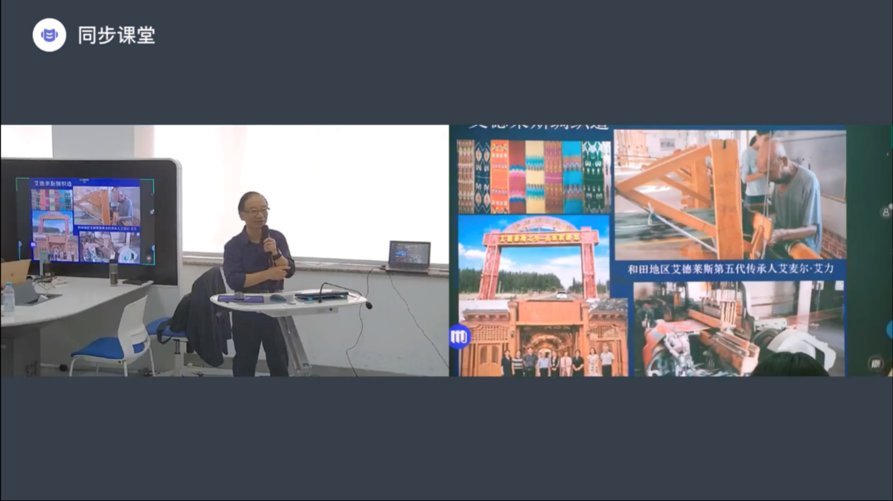 大学纺织(丝绸)学院纺织工程国家级一流本科专业建设点负责人、浙江省教学名师祝成炎教授主讲。祝成炎教授深入浅出地为同学们介绍了织造工程的基本概念、织机主要机构、织机类型以及织造的历史现状与发展等内容,通过加入丰富的图片和视频资源,授课内容更加生动有趣。同时,还将中国传统的黎锦和艾特莱斯丝绸的织造以及使用大提花织机织造千里江山图等思政元素穿插其中,使同学们在学习专业知识的同时也感受到了中华传统文化的传承与发展。