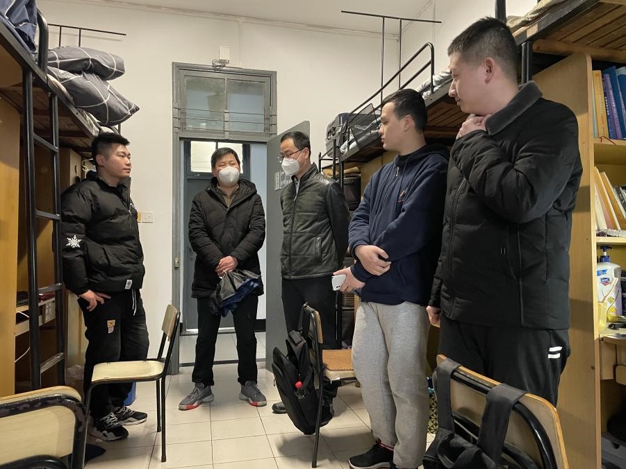 送上一堂“现场温情课”。2月12日开学当天,纺织(丝绸)学院党委书记徐伟强、院长于斌、党委副书记方平以及学工办的辅导员来到学生寝室、实验室,开展开学季的防诈宣传、强调考试季的考风考纪,同时叮嘱同学们在新学期仍要做到安全防疫,保护好自己的生命安全、财产安全,做好自己健康的第一责任人。在走访毕业班学生时,老师们详细询问大家的考研、就业状况,提供相关的指导,并认真听取了毕业生对学院工作的意见和建议。