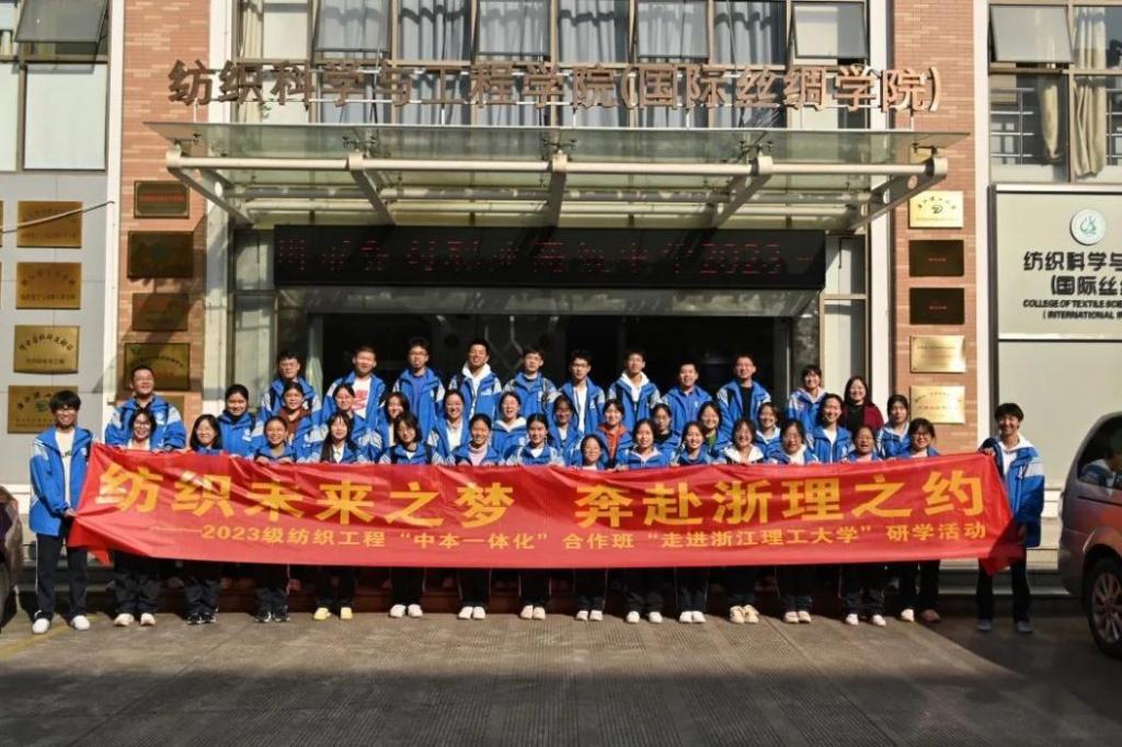 (国际丝绸学院)在学校教务处指导下,和杭州市乔司职业高级中学组织开展2023级“中本一体化”合作班研学活动,合作班学生、任课教师和家长共同走进人妻