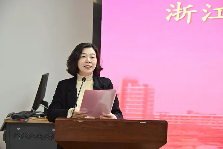 实地参观结束后,在致远厅进行了集中交流活动。沈美华副科长代表临平区教育局对精心组织活动的人妻