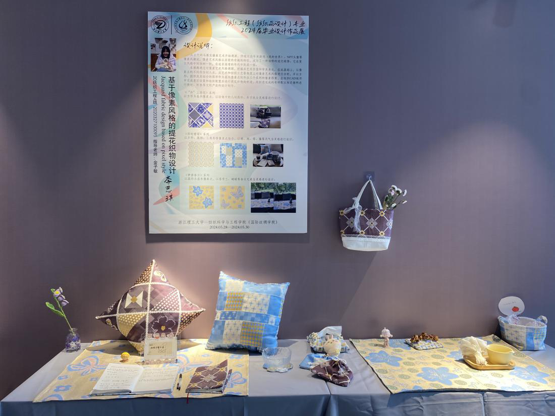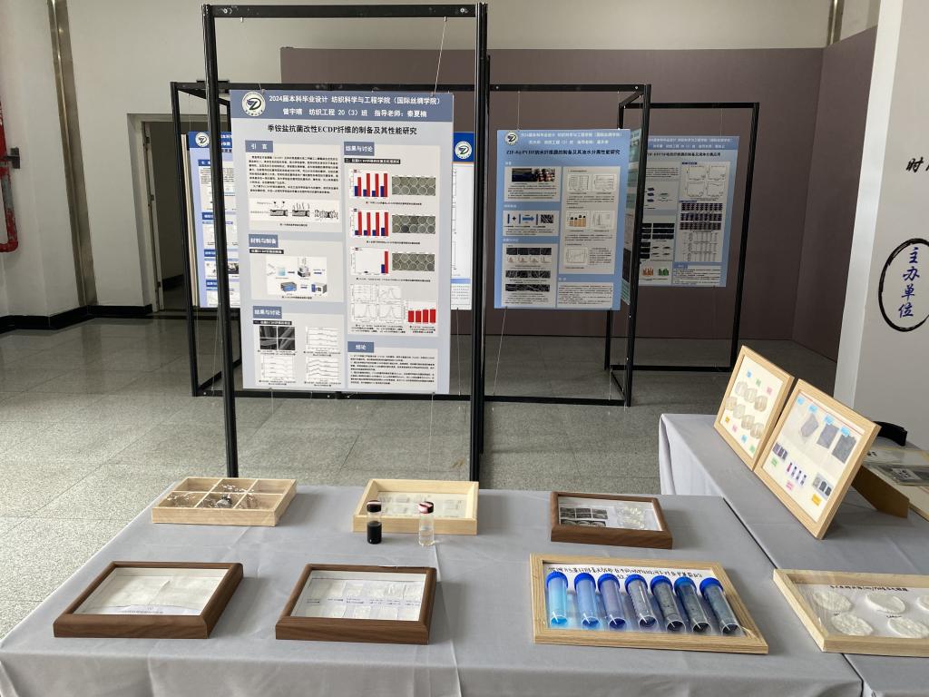 展览汇集了2024届纺织工程(机织工程与贸易、针织工程与贸易)、纺织工程(纺织材料与检验)、纺织工程(纺织品设计)、轻化工程、非织造材料与工程、丝绸设计与工程专业近150件优秀毕业作品。展览作品内容题材丰富、形式表现多样、科技元素凸显,充分展示了学生们的学术追求和创新成果,集中显示了学生们创新、创意、创业“三创”能力。同时本次展览作品体现出专业知识和思政元素的融合,是专业教学与课程思政有机结合的综合汇报。