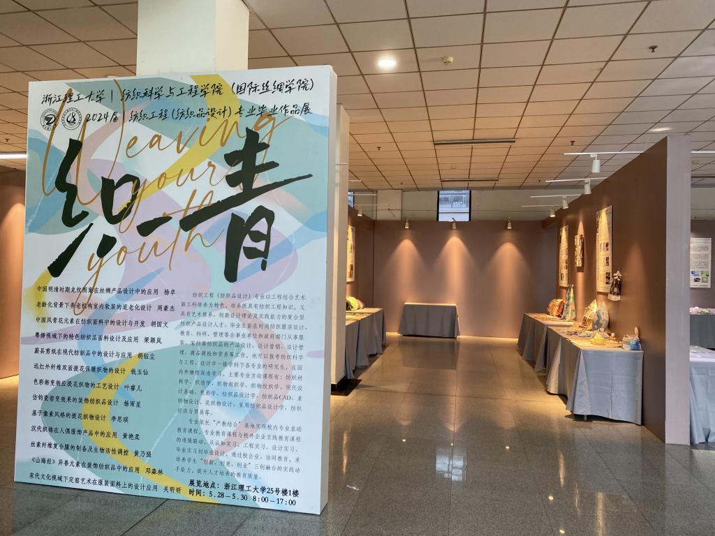 (国际丝绸学院)在25号楼1F展示厅,成功举办了感织——现代纺织“三创”人才优秀作品展暨课程思政建设成果展。