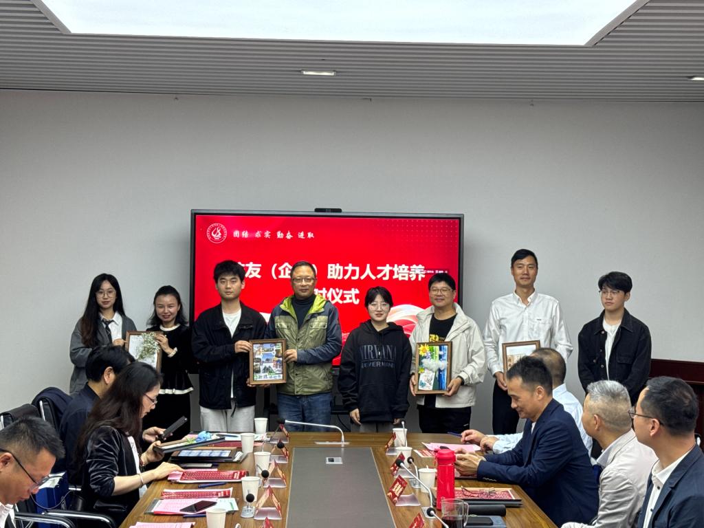 在校友(企业)助力人才培养结对仪式上,共聘请18位优秀校友担任“领航导师”,共同为人才培养贡献力量。结对学生也纷纷施展自己所长并结合专业知识,设计打造出一件件富含感情的作品赠送给对应导师。