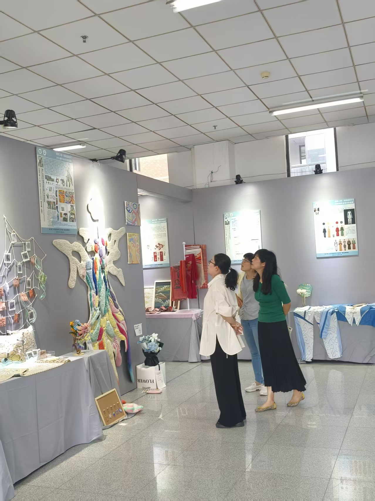 (国际丝绸学院)在25号楼1F展示厅成功举办了融织——现代纺织复合人才优秀作品展暨课程思政建设成果展。
