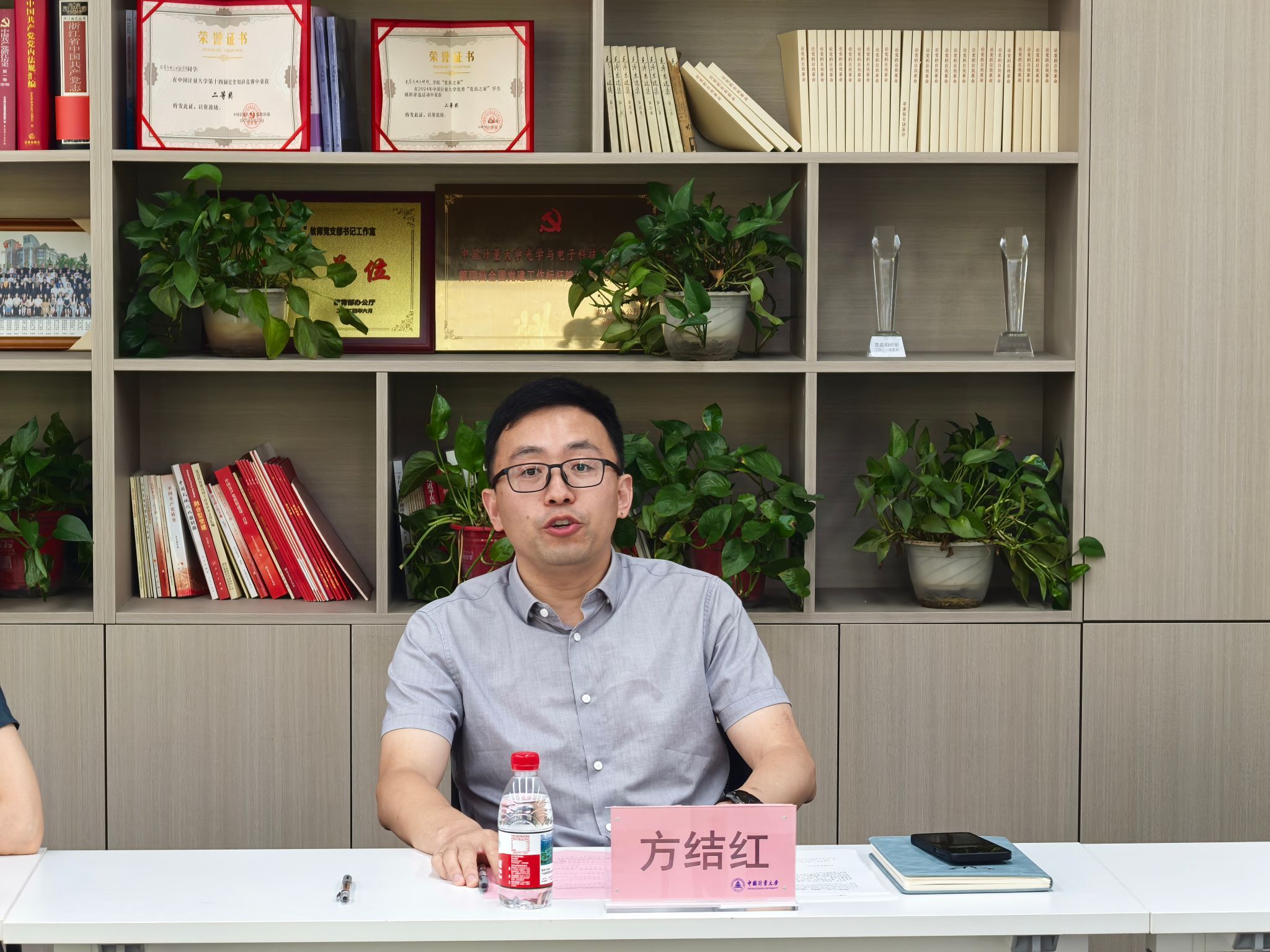 方结红对学院一行的到来表示热烈欢迎。他指出,两院学科特色鲜明、专业互补性强,在人才培养目标上具有高度一致性。他分享了中量大光电学院构建“科教融合,拔尖人才培养”的育人模式,并重点介绍了学院提升学生科研参与度与创新创业能力的经验。他强调,学生工作需紧扣学科发展脉搏,以“精准服务”破解学生成长痛点,期待双方未来在平台共建、资源共享等领域深化合作。