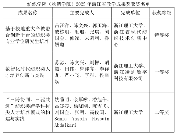 在办学实力、人才培养以及教研水平等方面再上新台阶。纺织学院(丝绸学院)在学校的有力指导下,持续深化纺织专业领域教育教学改革,深耕教育教学内涵建设,加强教学成果的总结提炼与转化应用,深入推进人才创新培养工作,努力为学校高等教育高质量发展贡献“纺织智慧”。