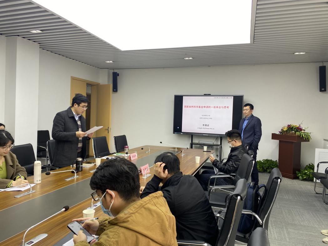 (国际丝绸学院)在17-312会议室举行2023年国家自然科学基金申报辅导会。本次会议邀请了杭州师范大学李勇进教授莅临指导。余厚咏副院长主持会议,教学科研办公室主任顾越桦、国家自然科学基金申报教师参加了会议。