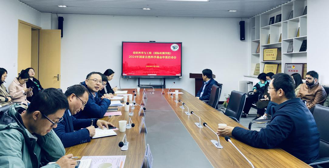 (国际丝绸学院)在17号楼312会议室,组织召开2024年国家自然科学基金申报启动会。会议邀请了江苏师范大学副校长、国家自然科学基金杰出青年基金项目获得者董晓臣教授作基金项目申报专题辅导报告。纺织学院院长于斌,科技处副处长朱恩泽,纺织学院副院长吕汪洋、院长助理胡毅、学术副院长刘国金、教科办主任顾越桦,科技处基金项目主管周艺艺,有关国家自然科学基金申报教师等参加了会议。会议由于斌院长主持。