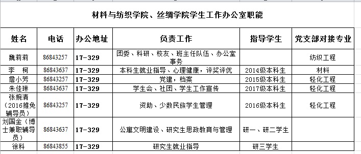 学院学生工作办公室职能分工表