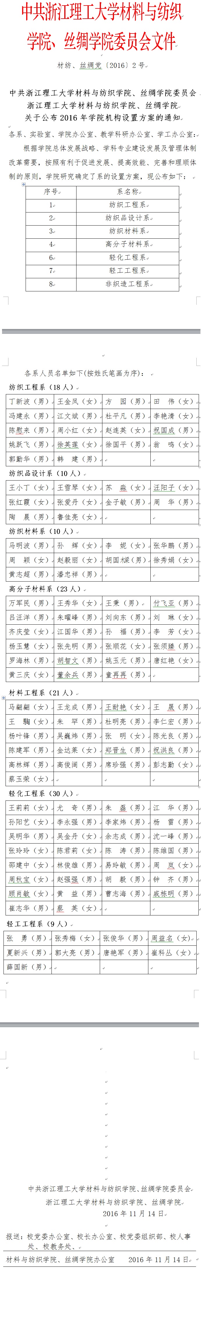 中共人妻 大学材料与纺织学院、丝绸学院委员会人妻 大学材料与纺织学院、丝绸学院关于公布2016年学院机构设置方案的通知