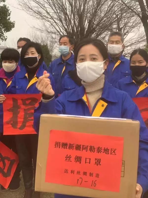 2月2日,达利丝绸(浙江)有限公司向新疆阿勒泰地区捐赠一万只丝绸口罩,体现了万里抗“疫”,虽远必达的决心!