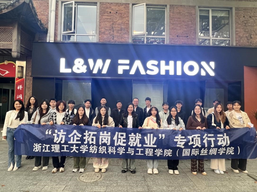 学院发展牵动广大校友的心,促进校友发展也成为学院奋进之举。立足协同创新、促进校企全面合作交流成为校友和学院的共同主题。11月7日下午,纺织(丝绸)学院党委副书记方平携纺织工程系专任教师、本科就业辅导员、应届毕业生及大三学生20余人走访校友“杭州利维服饰有限公司(以下简称利维服饰)”,开展访企拓岗和调研交流活动。01级校友、杭州利维服饰有限公司L&W FASHION LIMITED总经理翁娜清、01级校友、杭州纯享丝道旅游文化发展有限公司公司总经理何纯建及03级校友、杭州丰印数码纺织技术有限公司总经理林乃苗热情接待师生一行。