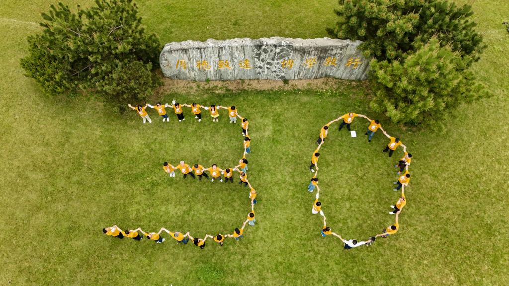 最后,91染整班校友在校训石前留下了宝贵的“30”周年合影。
