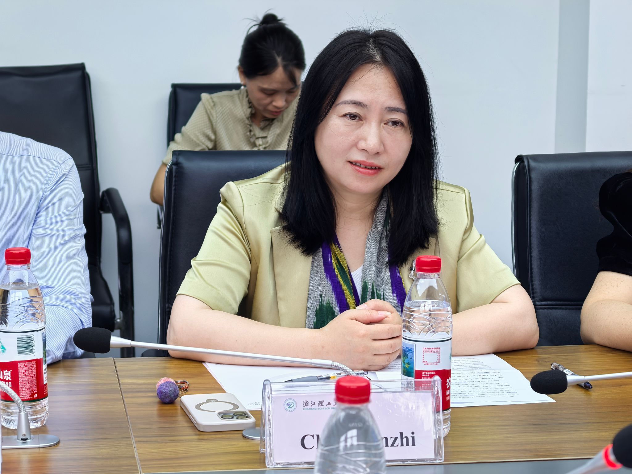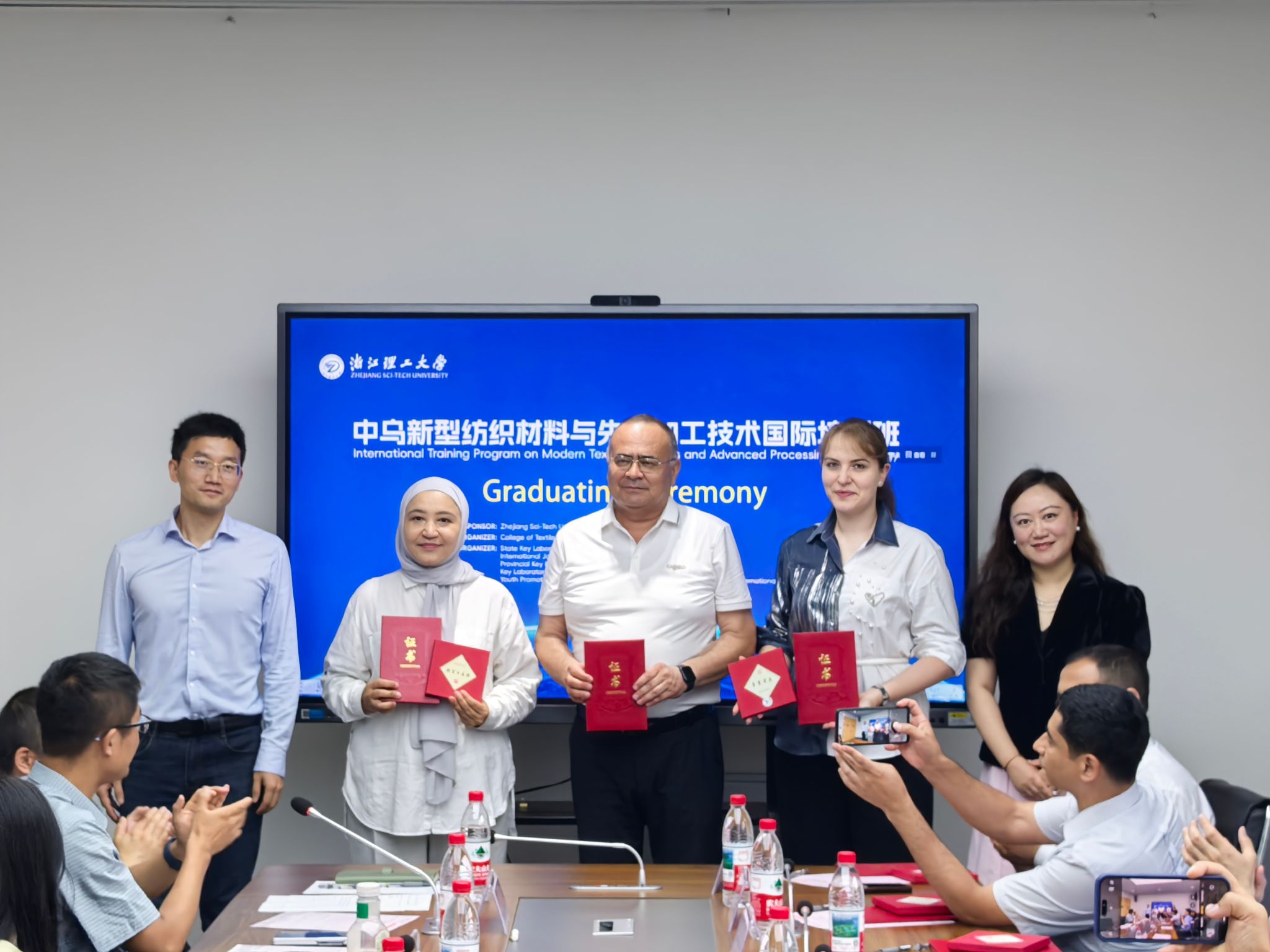 69上午,由浙江理工大学主办,人妻 (国际丝绸学院)承办,生物基纤维材料全国重点实验室、教育部绿色纺织国际合作联合实验室、全省未来产业用纤维材料重点实验室、先进纺织材料与制备技术教育部重点实验室、人妻 (国际丝绸学院)青促会协办的“2025新型纺织材料与先进加工技术国际培训班”在人妻 举办结业典礼。人妻 大学国际教育学院院长陈敏之国际交流与合作处副处长武观,人妻 (国际丝绸学院)书记苏淼、院长于斌、副院长刘国金和教师代表出席了开班典礼。结业典礼由人妻 (国际丝绸学院)教授祝国成主持。