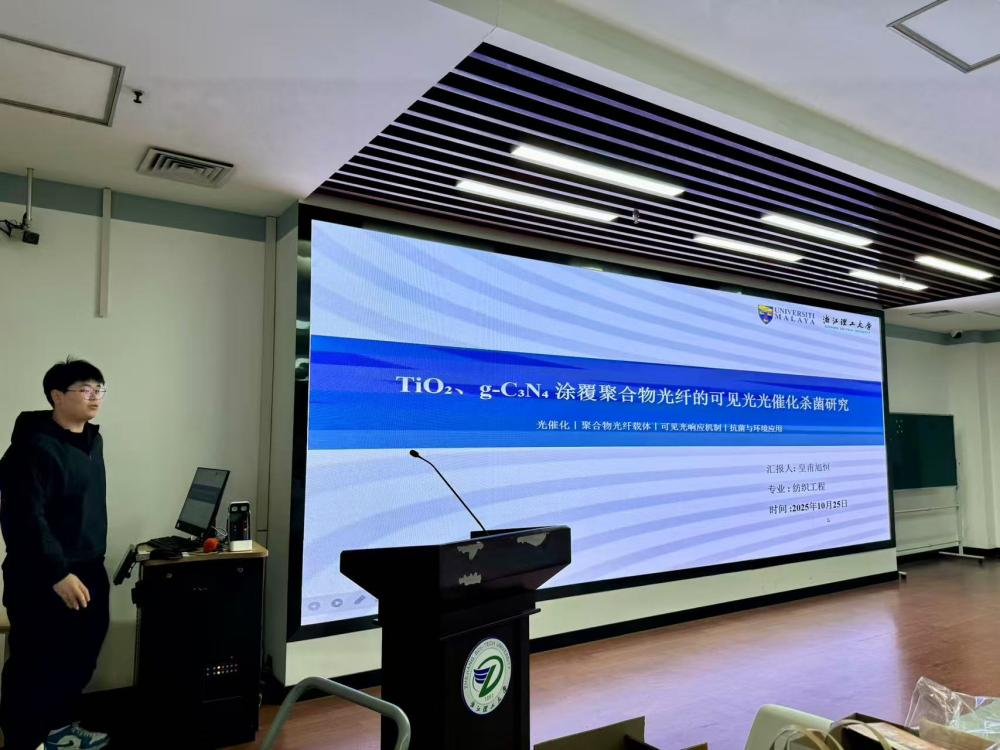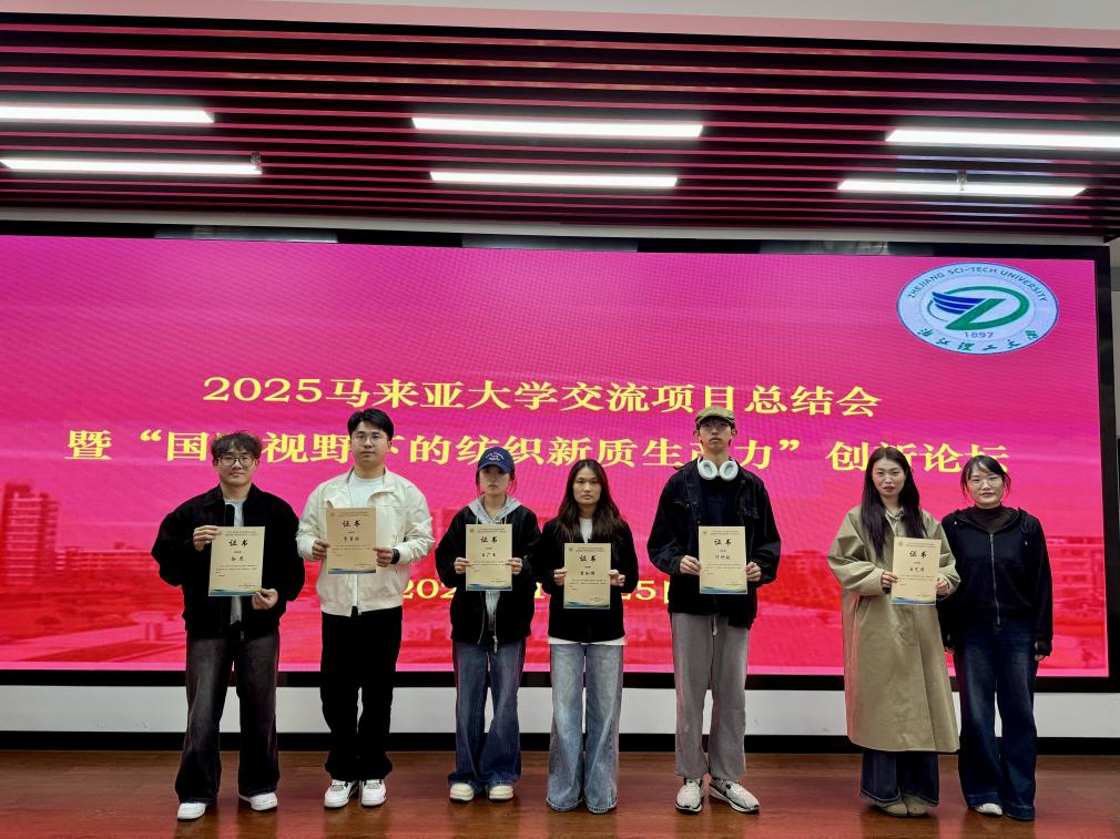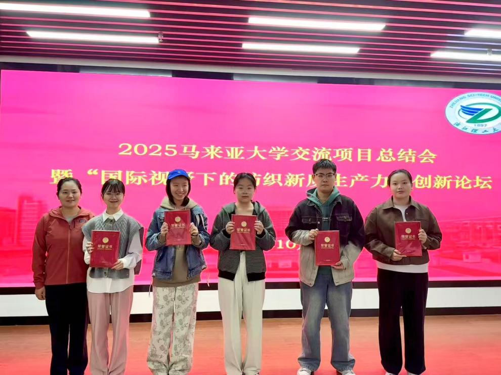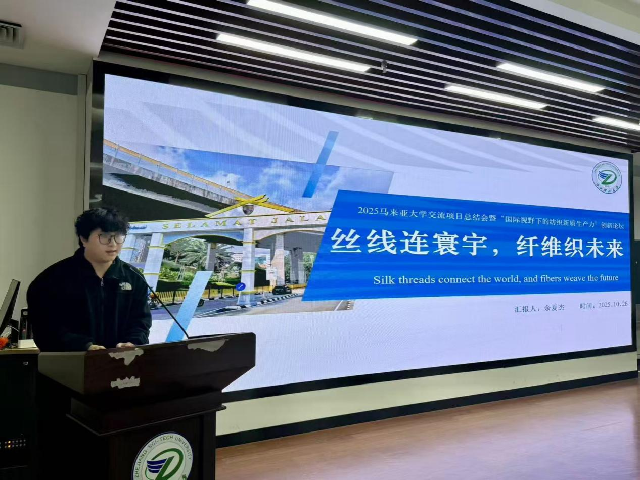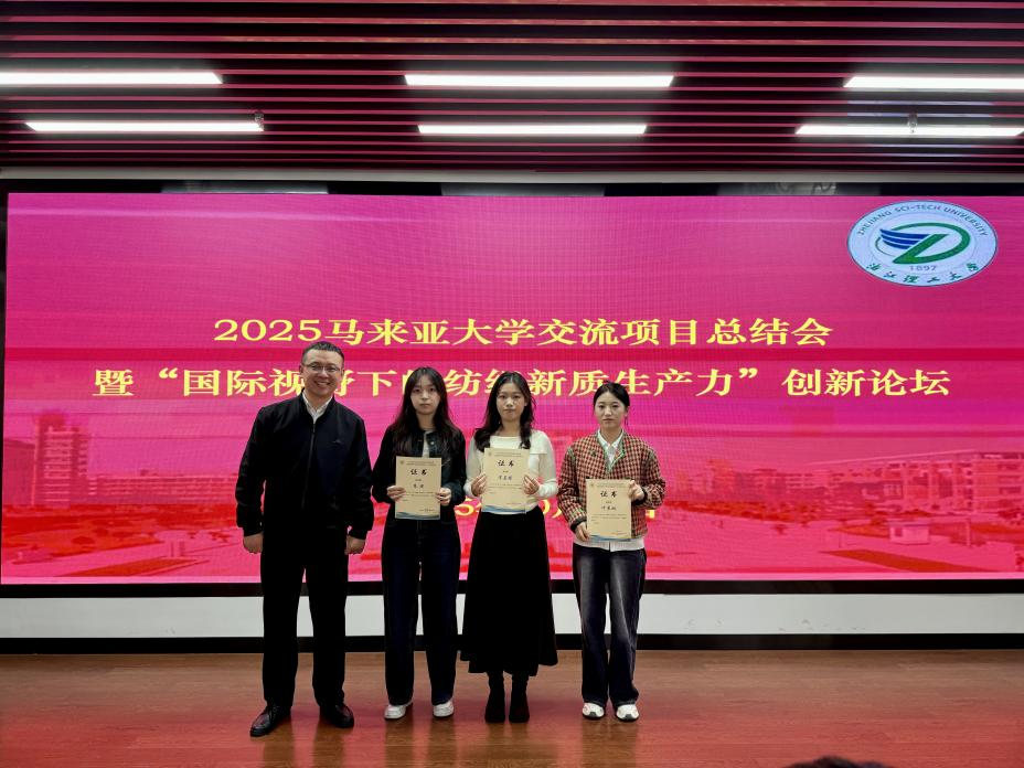 在致远厅召开了2025马来亚大学交流项目总结会暨“国际视野下的纺织新质生产力”创新论坛,学院副院长刘国金,学术副院长宋凯利,学工办主任侯霞,外事秘书倪端,专任教师孙菲、侯雪斌、翟世民、朱维以及参加交流项目的同学们共同出席了本次会议。