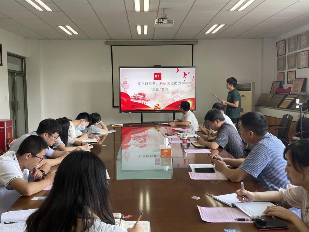 随后,学院党建“四个融合”项目负责人进行中期汇报。文脉强基项目负责人周皓荻从红丝路启梦、红丝韵铸魂、红丝享强志三方面讲述了科研文化、非遗文化与抗疫文化融入学院党建发展的有机成果。学术红人项目负责人胡万里以各研究生党支部为抓手,发挥研究生党员在研究生学术文化节、绿色@纺织学术论坛、研究生云端读书会等活动的作用,探索颇具创意又具实效的研究生育人模式。博士第二党支部书记胡能从学术科研交流、实验室安全建设、党员思想政治教育三方面介绍了支部的特色工作做法。