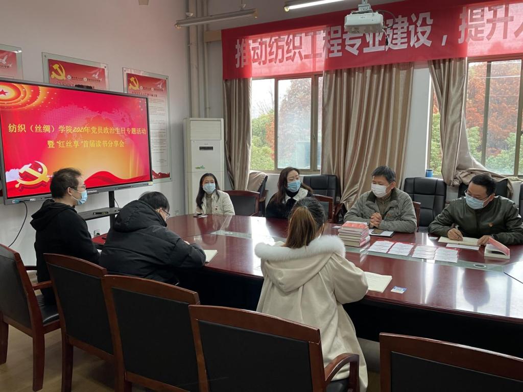 为进一步丰富党建工作内涵,强化师生党员的凝聚力建设,纺织(丝绸)学院于12月14日举行2021年度党员政治生日专题活动暨首期“红丝享”读书分享会,学院党委书记徐伟强、副书记方平,党龄为10年、20年、30年的教师党员代表和新发展学生党员代表参与本次活动。
