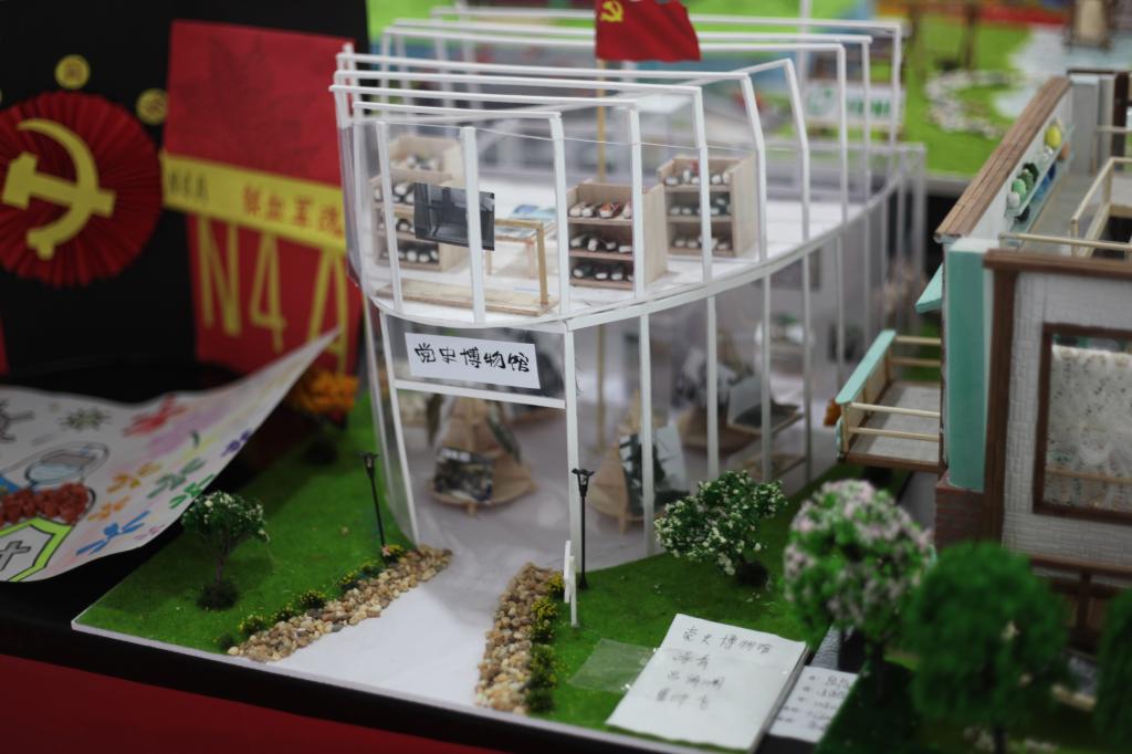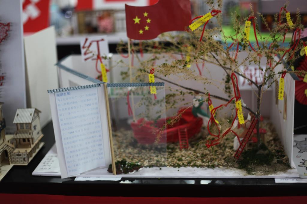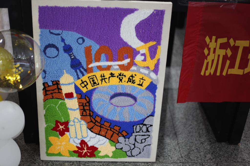本次橱窗作品展围绕浙江百年发展历史开展艺术设计。学院纺织品设计专业、丝绸设计与工程专业的学生通过模型板和亚克力板固定作品的外延,以形式各异的透明软塑料片装点橱窗的内在设计,从南湖红船的开天辟地,到解放浙江的峥嵘岁月,再到浙江发展的日新月异,他们或用轻黏土塑造出红色作品里的场景细节,或用模型板还原出红色建筑的一砖一瓦,或用千线万针绣出自己的一片“红心”,向党的百岁生辰献礼。