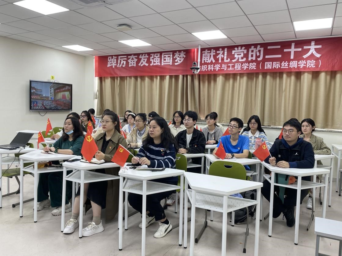 热烈庆祝党的二十大的胜利召开!纺织(丝绸)学院师生员工集体收看开幕盛况