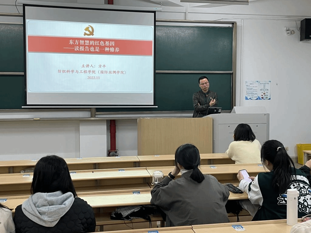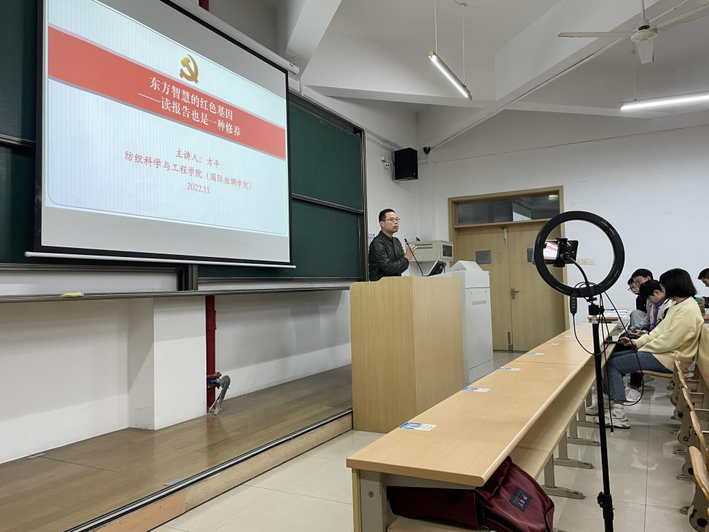 (国际丝绸学院)在3N111举行“书记微党课”活动,含预备党员、入党积极分子的100多名学员参加。学院专门开辟“线下教室党课教学+线上公寓党校授课”党课教授模式,在距离教学区较远的公寓党校内,设立学习研讨专区,共享党课对党的二十大精神深度解读。本次微党课由学院党委副书记方平主讲。