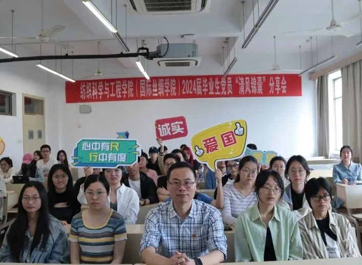 一堂基于说服心理学的“清风锦囊”分享会在2-S435举行。主讲者是纺织(丝绸)学院党委副书记、纪委书记方平,倾听者是全体2024届毕业生党员、各支部纪检委员。生动的案例、鲜活