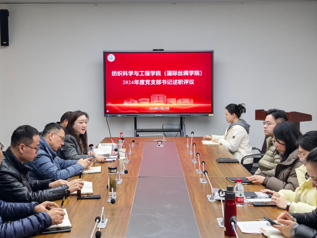 为深入贯彻落实习近平新时代中国特色社会主义思想和党的二十届三中全会精神,压紧压实党支部书记抓党建工作第一责任人职责,不断提高基层党建工作质量实效,12月25日,纺织(丝绸)学院召开2024年度党支部书记抓基层党建工作述职评议会。学院党委委员、领导班子成员、全体党支部书记参加此次会议,会议由党委书记苏淼主持。