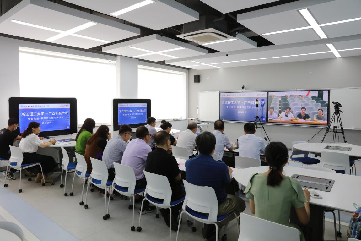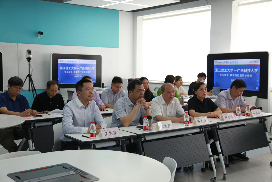 大学和广西科技大学师生齐聚云端,开展“专业共进、慕课西行暨同步课堂活动”启动仪式,同时在学校大力支持下,浙江省现代纺织专业建设虚拟教研室现场启动并开展了同步课堂教学活动。校长陈文兴,副校长许慧霞,原副校长陈建勇,人妻