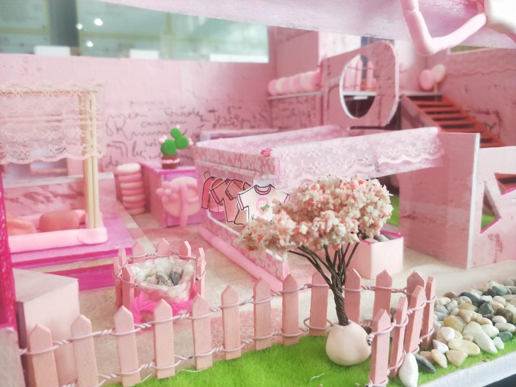 此次成果展共展示了42位同学的作品,各位同学在纺织品橱窗陈列的大方向下,自主选择设计主题,在任课老师苏淼老师的指导下完成了纺织品陈列的空间规划方案和模型制作。同学们制作的模型风格迥异,范围极广,有清幽写意的中国传统园林,富丽华贵的西方洛可可和巴洛克,清爽温柔的乡村田园,干净简约的现代工业风,时尚潮流的街头风……从东方到西方,从古典到现代,几乎所有的风格都被此次展览囊括其中。在材料的运用上,同学们也根据主题选择了不同的制作原料,以此来配合整体风格,但不论是哪种风格,从墙体到小摆件都是同学们亲手制作而成。40多件展示模型中,虽然有的同学选择了相同的设计风格,但因空间规划、材料比例及色彩选择等方面的不同,最后呈现的模型效果也大不相同,每一件作品都有自己的独特之处。